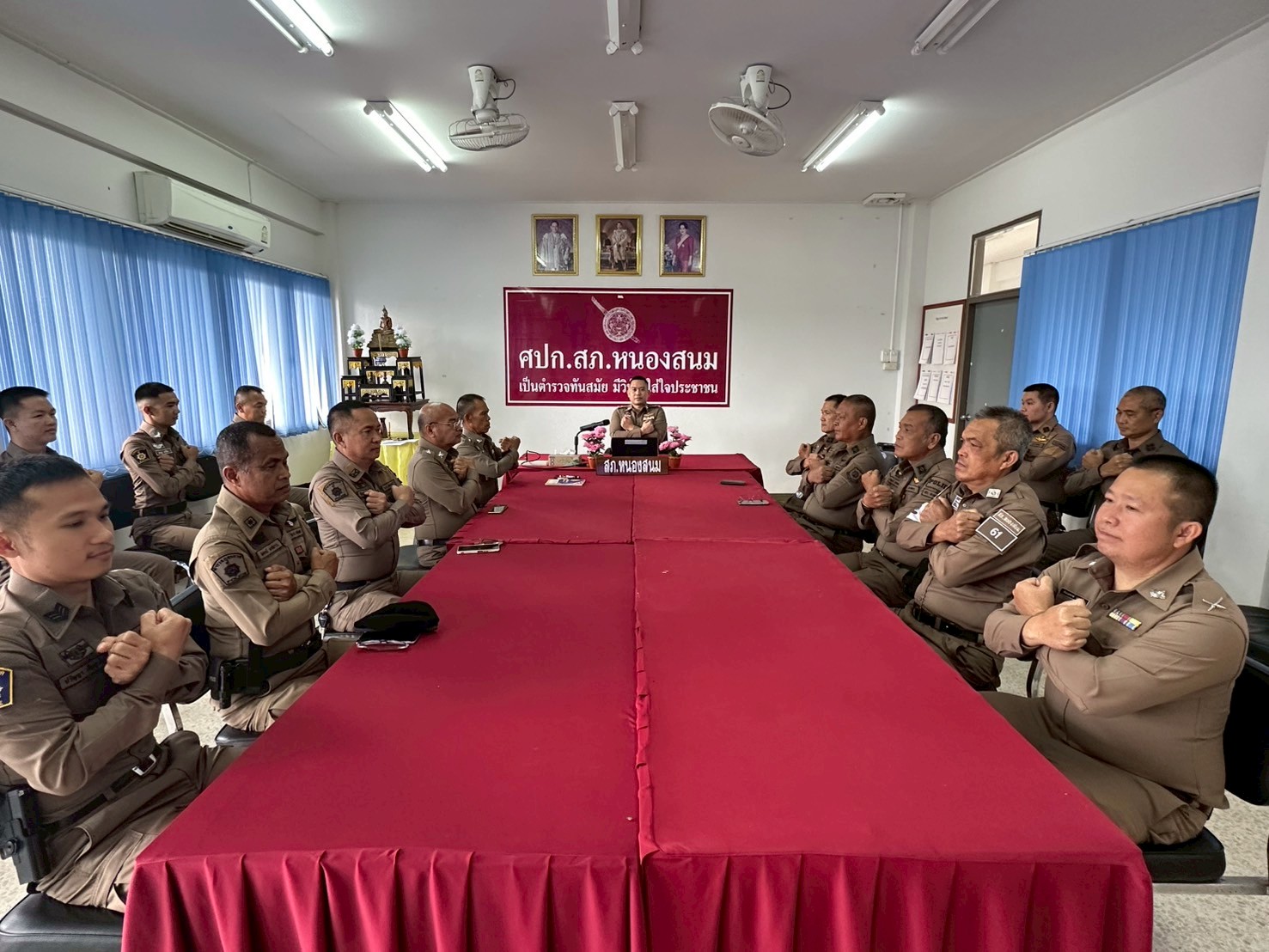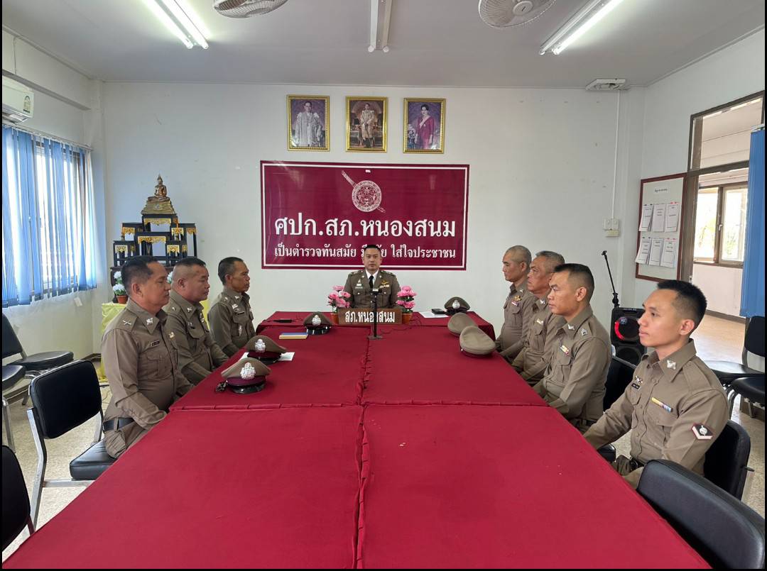 วันที่ 1 เม.ย.68 เวลา 09.30 น. พ.ต.ท.จักรกฤษณ์ กองม่วง สวญ.สภ.หนองสนม จัดอบรมข้าราชการตำรวจในสังกัด เรื่อง ข้าราชการตำรวจพึงปฏิบัติตน เพื่อรักษาจริยธรรม ในการประชุมบริหารประจำเดือนของหน่วย และเจ้าหน้าที่ตำรวจสายตรวจ ร่วมประชุมชี้แจงชุดปฏิบัติการสายตรวจในการสร้งการรับรู้และขับเคลือน การประเมินคุณธรรมและความโปร่งใสของหน่วย